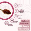 This gulkand is meticulously prepared from handpicked rose petals, ensuring its purity and authenticity. With no artificial additives or preservatives, it retains the natural essence and nutritional value of the roses. The traditional preparation method preserves the delicate aroma and flavour of the rose petals, resulting in a decadent and aromatic jam that delights the senses with every spoonful.
