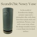Meet the vase thatâs got style, sass, and a touch of Scandinavian charmâthe Ceramic Scandinavian Nosey Chic Vase By Earthly Edges! This delightful piece is all about bringing a playful, yet refined touch to your home decor.Infuse your space with a splash of Scandinavian flair and a dose of cheeky charm with our Nosey Chic Vase. Whether itâs adding a playful touch to your living room, brightening up your dining table, or peeking out from your entryway, this vase is all about making your decor fabulously fun and uniquely you.Elevate your home decor with a dash of whimsy and a whole lot of chicâbecause style should never be taken too seriously!