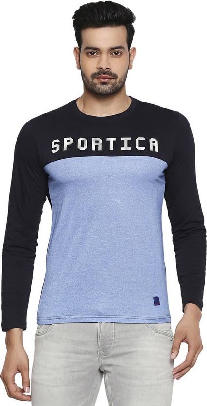 Men Printed Round Neck Pure Cotton Blue T-Shirt