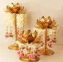 Easyera Golden Beautiful Tealight Holder Stylishly Shaped Lotus Candle Stand {3Pc Set) Iron 3 - Cup Candle Holder Set (Gold, Pack of 3)