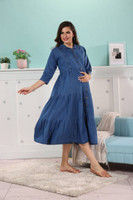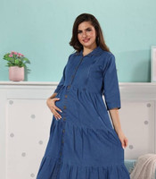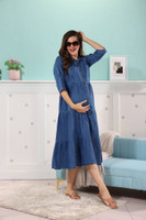 Thanks to its soft, breathable denim composition, this dress balances structure with ease of movement. The fabric accommodates body changes during pregnancy, while maintaining its shape over time. Its durability and natural flexibility ensure long-lasting wearability, providing a smooth fit and practical comfort throughout the day.