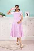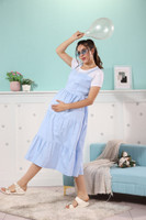 Thanks to thoughtfully positioned zippers at either side of the front, this maternity dress allows convenient access for breastfeeding. The fit and flare silhouette accommodates changes in body shape, providing room around the waist and hips. The tiered design offers a dress whose volume is evenly distributed, creating a flowing drape that supports comfort without compromising style throughout pregnancy.