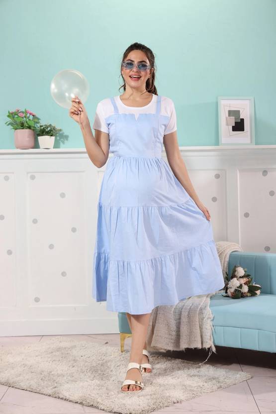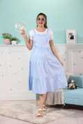 EASYMOM Women Fit and Flare Light Blue Midi/Calf Length Dress