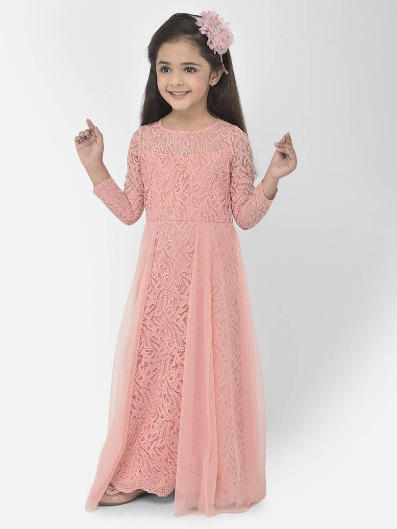 Self Design Lace Stitched Flared/A-line Gown (Pink)