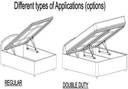 Ideal for partial storage under beds., Special gas pumps included., 27º opening angle allows easy access., Easy to lift (with weight of top board) with minimum force., Easy access as the gas pump keeps the bed top open.