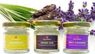 EBLOOMING Scented Candles Set For Home in Small Glass Jars I Rose, Vanilla, Sandalwood Candle (White, Pack of 3)