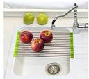 EBOFAB_Foldable Stainless Steel Drain Rack / Kitchen Sink Roll up Dish Drying Rack / Portable Dish Drainer Rack for Crockery, Utensils, Fruits, Vegetables, Etc. (Multi-Colour)PREP FRUITS, VEGGIES, & MORE: Hold and rinse fruits and vegetables for serving or juicing, thaw frozen foods, cool baked goods, cushion hot dishes Support stainless steel sink with cutting board for slicing food or to fill liquid containers (bottles, cups, etc.) SLEEK & DURABLE DESIGN: Made with heat resistant heavy duty silicon in a beautiful gray finish Secure and fits most standard sized kitchen sinks. ROLL UP KITCHEN: DRY DISHES INSTANTLY Allows air flow to promote drying Use as a trivet/drying rack for pots, pans, ceramic, porcelain, cloths, sponges, flatware, infant bottles, and much more Water drips off dishes and directly into the sink No more messy counter tops or leaving items on dish towels Great cutlery and plate organizer to separate clean from dirty dishes. COLLAPSIBLE SINK DRYER RACK FOLDING HOLDER: This is a multi-purpose product. It can be used over the sink for drying dishes, cups, plates, bowls, tableware cookware, for fruit and vegetable washing colander platform, or for defrosting frozen food. It can also be used as a mat under hot pots & pans, as a cooling rack for baked goods. Roll up, when it do not use, saving space in your kitchen. SPECIFICATIONS: Product Dimensions: 22.5 cm x 47 cm x 1 cm Weight: 490Gm Material: Stainless Steel + Silicon Load can handle weight: 20 Kg PAKING IN: