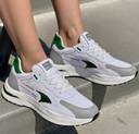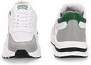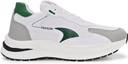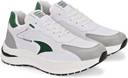 ⢠Stylish Design: Modern white sneakers with green accents and embossed details