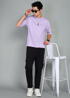 BEING WANTED Solid Men Round Neck Purple T-Shirt