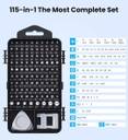 The 115 in 1 Precision Screwdriver Kit is the most original and classic electronics repair tool kit, containing 98 screwdriver heads and 17 accessories. The electronic multi-screwdriver basically covers all the tools for electronics and small repairs - perfect for laptops, phones, computers, jewelers, glasses, game consoles, drones, and other electronics.