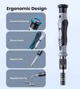 【RELIABLE MATERIAL】 This magnetic replaceable screwdriver is crafted from high-quality CR-V steel, which boasts impressive strength, precision, and durability without damaging devices. Every bit is designed using thousands of refined repair data and undergoes a high-temperature treatment process to ensure stability and resistance to stripping, guaranteeing long-lasting use.