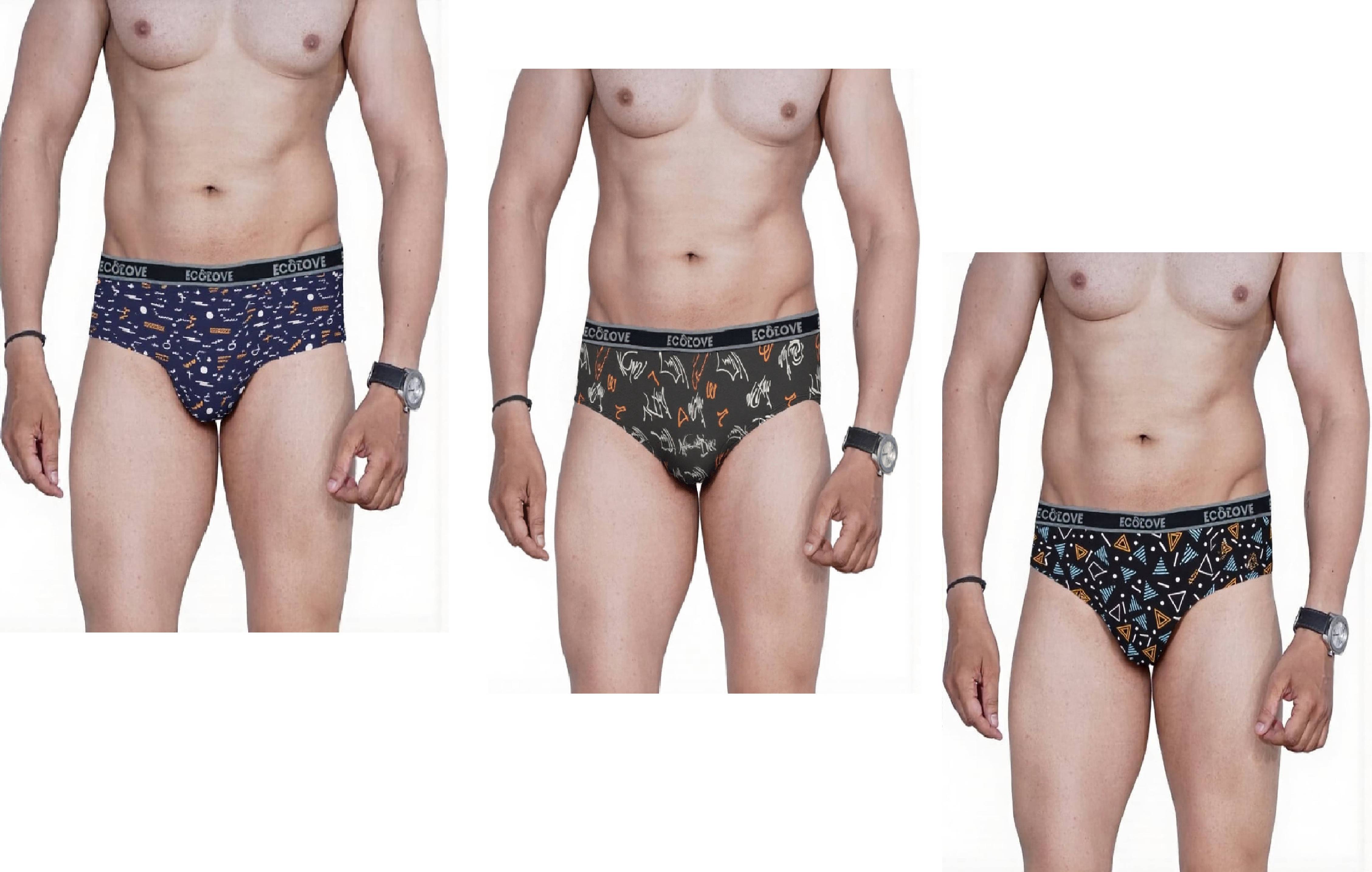 Ecolove offers one of the best briefs in everyday, basic innerwear. Made from soft, breathable cotton fabric, this brief for men will keep you comfy and at ease throughout the day. comfortable everyday essential innerwear. Made from breathable, sweat-absorbent, and skin-friendly cotton, these timeless classics are ideal for full-day usage.Ecolove underwear is comfortable enough for you to feel good all day, every day. Long-lasting and durable, this offers limitless comfort and ease of movement at all times, making it an absolute must-have. These basic underwear are carefully designed to keep you relaxed all day.Discover comfort and style with these trendy ECOLOVE men's underwear featuring unique geometric patterns and modern designs. Each pack includes three distinctive prints - a grey variant with abstract dots and dashes, a black base with artistic white sketches, and a navy blue option adorned with triangular patterns. The elastic waistband bears the ECOLOV branding and provides a secure, comfortable fit. Made with soft, breathable fabric that ensures all-day comfort, these underwear pieces combine fashion-forward designs with practical functionality. The premium quality construction and attention to detail make these an excellent addition to any gentleman's wardrobe. Perfect for daily wear, these underwear pieces offer both style and comfort without compromising on quality.