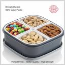 Airtight dry fruit storage container, Helps maintain good health and hygiene Separate Four removable cups for storing herbs or spices or dry fruits, easy to hold, pick up and carry, keep spices fresh for long hours, Serve dry fruits, mouth fresheners in a delighted way.