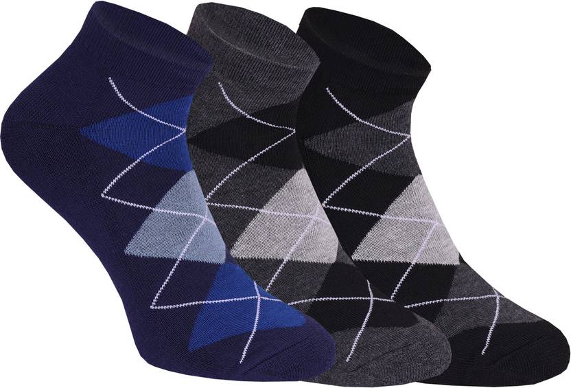 Pack of 3 pairs, available in Black, White, Grey, and Multicolor.