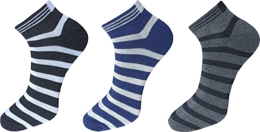 Pack of 3 pairs, available in Black, White, Grey, and Multicolor.