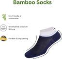 Made from premium bamboo cotton blend for all-day comfort, even in hot and humid Indian weather., Pack of 5 pairs in classic colours like black, white, grey, and dark blue for everyday use., Ideal for both men and women, these unisex socks offer a snug fit without tightness or itching., Ankle length design pairs well with formal shoes, sneakers, or sports shoes for daily wear., Keeps feet dry and fresh during long work hours or workouts with superior moisture control., Compression support helps reduce swelling and improves circulation, especially for diabetics., Soft, breathable fabric allows airflow and prevents odour even after long wear during travel., Durable heel and toe reinforcement enhances strength for repeated use without tearing., Trusted by Indian customers for daily comfort, whether you're at home, work, or on the move.
