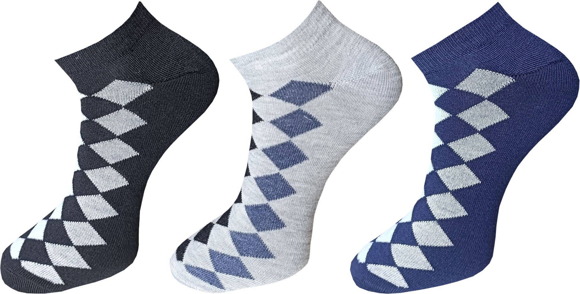 Pack of 3 pairs, available in Black, White, Grey, and Multicolor.