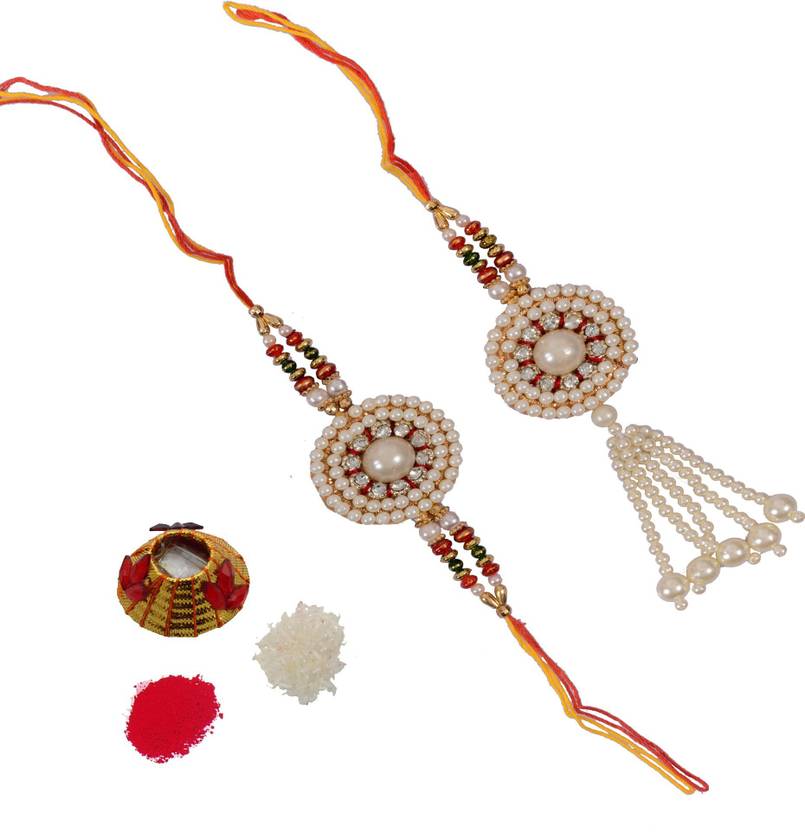 1 Designer Bhaiya Bhabhi Rakhi Set, 1 Roli Tikka Matki