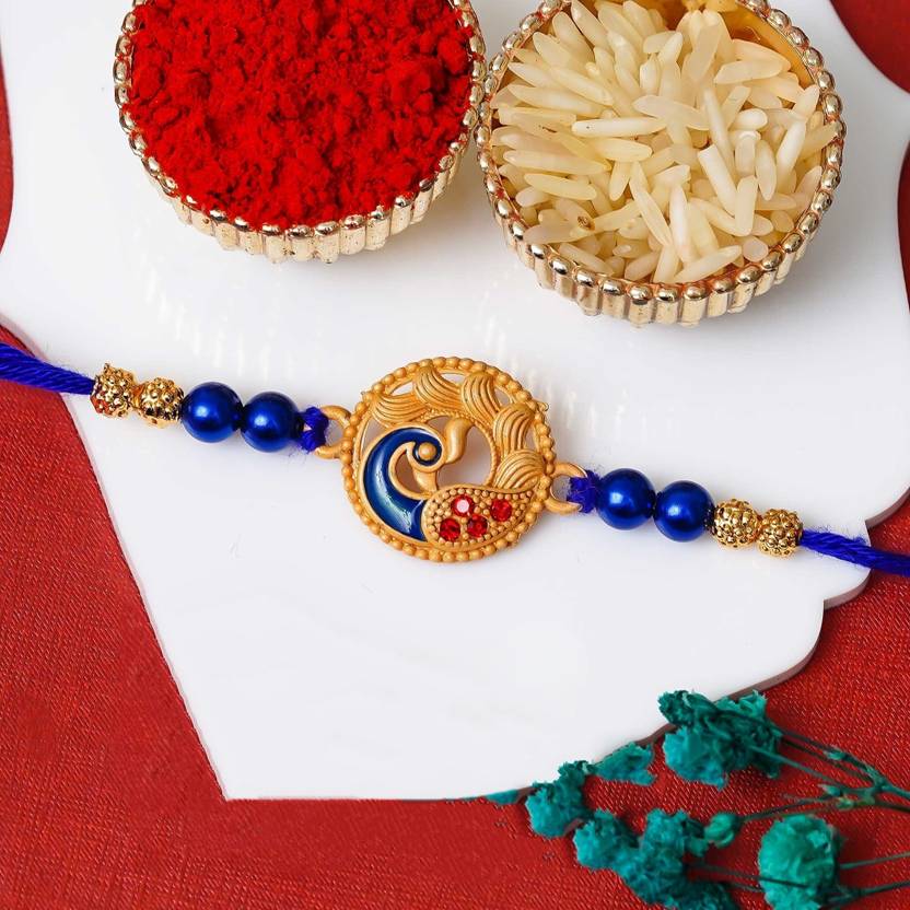 The eCraftIndia Blue Golden Designer Peacock Rakhi for Brother is a stunning blend of elegance and tradition, designed to celebrate the bond between brothers. Featuring a gorgeous peacock design with vibrant blue and golden hues, this peacock rakhi for brother is perfect for your bhai or bhaiya. It also includes a Roli Chawal Pack to enhance the festivities of Raksha Bandhan rakhi. Whether you're looking for a designer rakhi or a fancy rakhi for brother, this best rakhi for brother is a perfect choice. Make the occasion even more special with this unique, beautiful rakhi online!