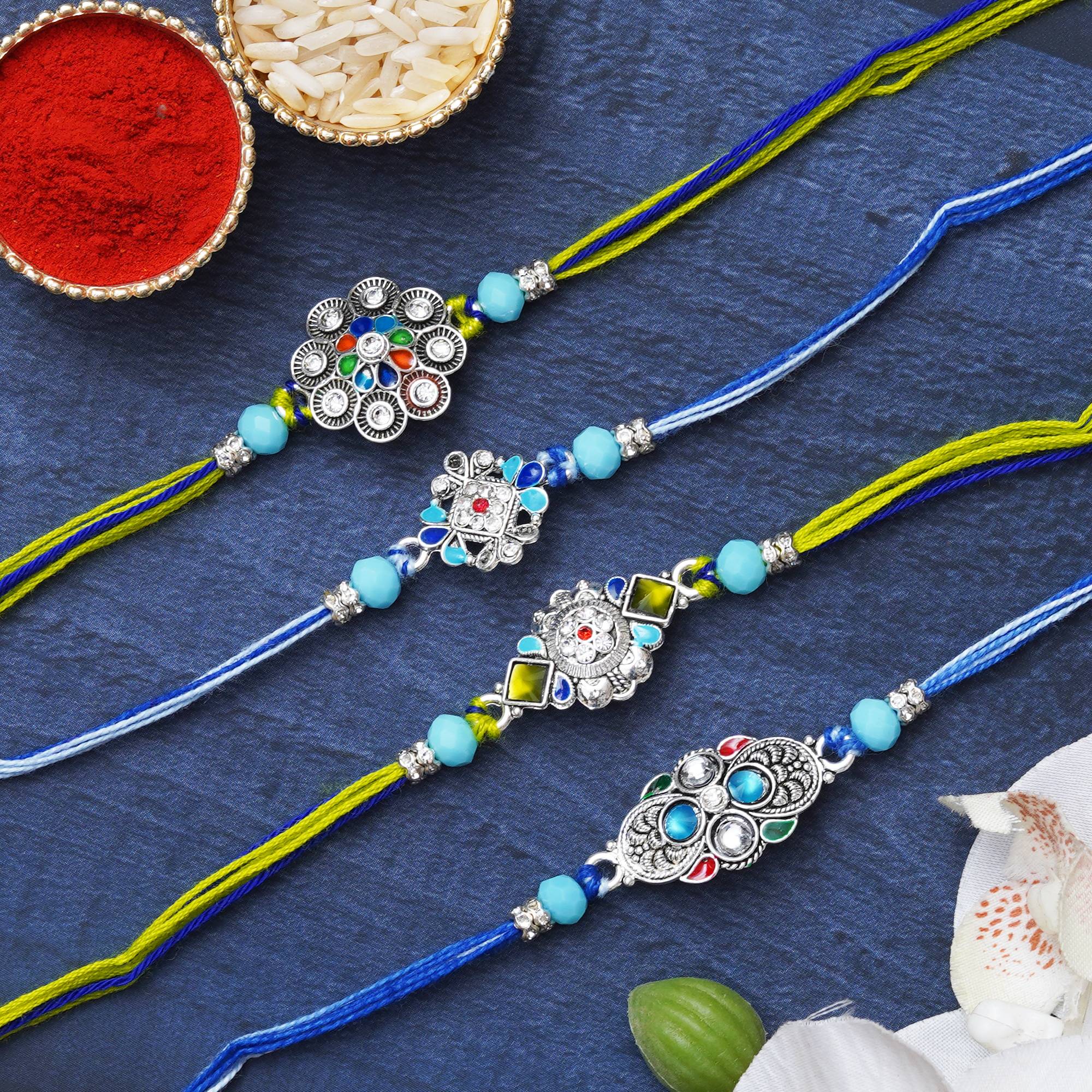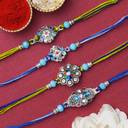 Set of 4 Designer Rakhis, 1 Roli Chawal Pack
