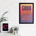 eCraftIndia "Good Things Come to Those Who Hustle" Motivational Quote Satin Matt Texture UV Art Ink 20 inch x 14 inch Painting (With Frame)