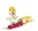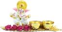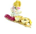 eCraftIndia Lord Ganesha Idol on Decorative Leaf with 2 holders for auspicious offerings Decorative Showpiece - 7 cm (Polyresin, Red)