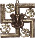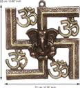 eCraftIndia Lord Ganesha on Om Swastik Metal Silver Wall Hanging Decorative Showpiece - 22 cm (Aluminium, Gold)