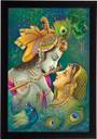 eCraftIndia Radha Krishna Satin Matt Texture UV Art Ink 14 inch x 10 inch Painting (With Frame)