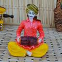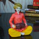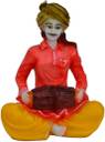 eCraftIndia Rajasthani Musician Statue Playing Dholak Decorative Showpiece - 15 cm (Wood, Pink, Yellow)