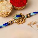 Celebrate Raksha Bandhan with the eCraftIndia Krishna Peacock Feather Designer Rakhi for Brother. This stunning Krishna Peacock Feather Designer Rakhi for Brother features a beautiful peacock feather design, symbolizing divine protection and Lord Krishna’s blessings. Perfect for Rakhi for Bhai or Rakhi for Bhaiya, this Designer Rakhi combines spirituality and elegance. Paired with a traditional Roli Chawal Pack, it completes your Raksha Bandhan Rakhi celebration, making it the perfect and meaningful gift for your brother.