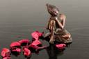 eCraftIndia Brown Metal Resting Buddha On Knee Statue Decorative Showpiece - 10.16 cm (Aluminium, Brown)