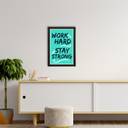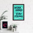 Decorate your home & office walls with this artistic design eCraftIndia "Work Hard, Stay Strong" Motivational Quote Satin Matt Texture UV Art Painting. Each design reflects the artistic qualities and time one has taken to design this painting. Exquisitely printed and framed, it is also a perfect gifting option for your colleagues, loved ones and family members. These frames don't include glass so it is very light weight and wet cloth can be used to clean it.
