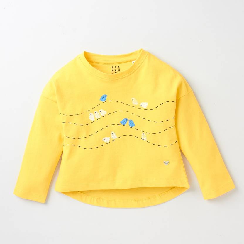 Ed-a-Mamma Girls Solid Pure Cotton Regular T Shirt (Yellow, Pack of 1)