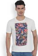 Men Printed Round Neck Cotton Blend White T-Shirt