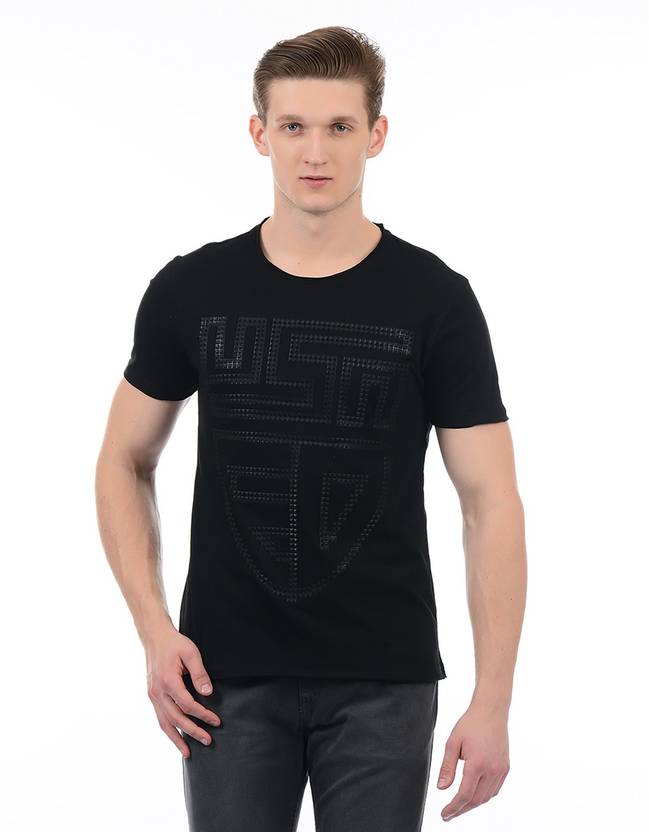 Men Printed Round Neck Cotton Blend Black T-Shirt