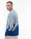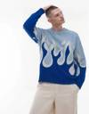 Eddicted Graphic Print Round Neck Party Men Blue Sweater