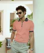 Solid Polo with Zip and Patchwork on sleeves giving you an old money style tshirt look