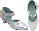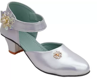 Adding a delightful touch to these girls' heels, decorative accents adorn both the front of the shoe and the end of the velcro strap. These embellishments not only enhance the overall aesthetic appeal but also cater to the preferences of young fashion enthusiasts. The decorations provide a playful and charming element to the heels, making them suitable for various occasions, from formal events to more celebratory gatherings.