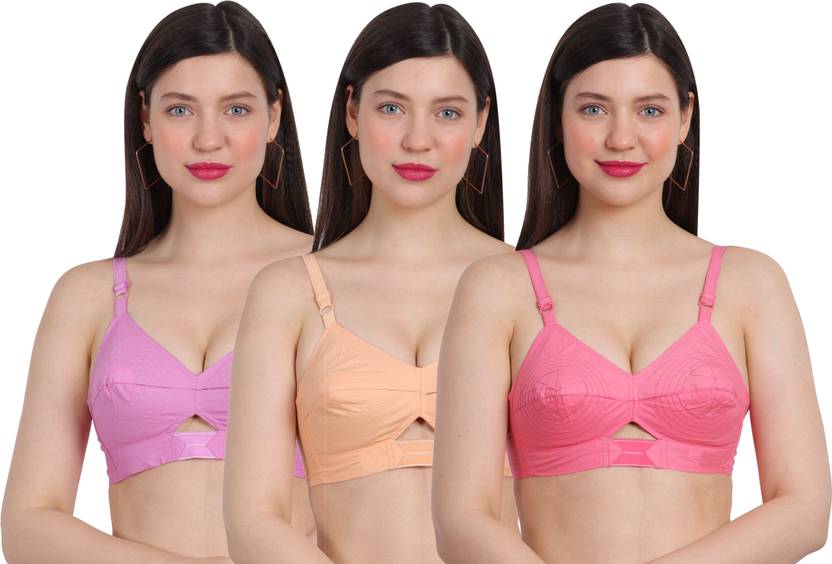 Pack of 3 Women Full Coverage Non Padded Bra (Pink, Beige, Purple)