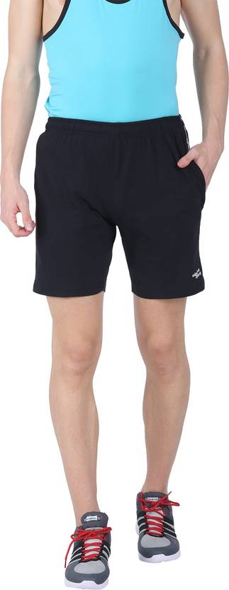 Update your active wear line up with this black pair of shorts by the brand Eden Sports. It is featured with elastic closure, has a solid pattern with blue piping on both the sides and a length above knees. It is crafted on cotton fabric that ensures comfort all day. Pair it with a blue t-shirt and your classy sports shoe and you are ready to go for a run.