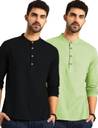 Pack of 2 Men Solid Pure Cotton Straight Kurta (Beige)