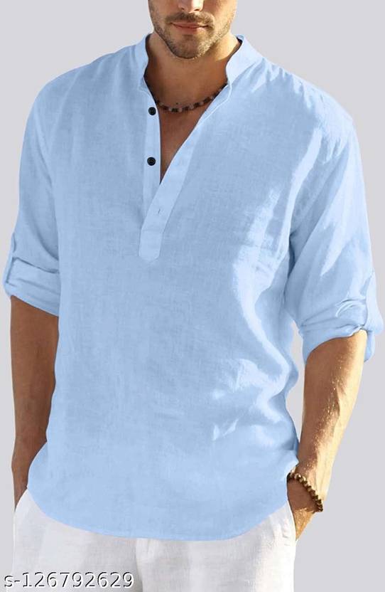 EDIN ENTRPRIS Men Solid Straight Kurta (Light Blue)