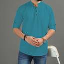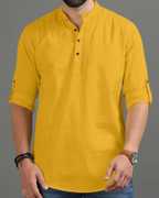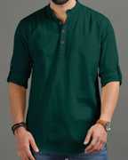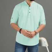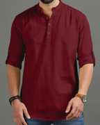 This Cotton Blend short kurta is perfect for men who value style and comfort. Its versatile design makes it ideal for any occasion—festivals, parties, or casual outings. Product Details 📋 👨🦰 Gender: Men 🎨 Pattern: Solid 🧵 Design Type: Plain 🔘 Closure: Button 👕 Sleeve: Full Sleeve (Roll-Up Option) ⬆️ Waist Rise: Mid-Rise 🪡 Collar: Mandarin/Chinese ✂️ Hemline: Curved 🌿 Fabric: Cotton Blend 📏 Product Length: Short 📦 Pack of: 1 Material & Care 🧺 Fabric: Cotton Blend Wash: Suitable for hand wash and machine wash. How to Style 🎯 Pair it with dark-wash denim or linen trousers for a casual look. Dress it up with a pair of churidar or slim-fit pants for festive occasions. Add leather sandals or loafers and a wristwatch for a classy finish. Roll up the sleeves for a relaxed vibe during daytime events. This short kurta seamlessly blends traditional elegance with modern styling, making it a wardrobe essential for every man! 👌"
