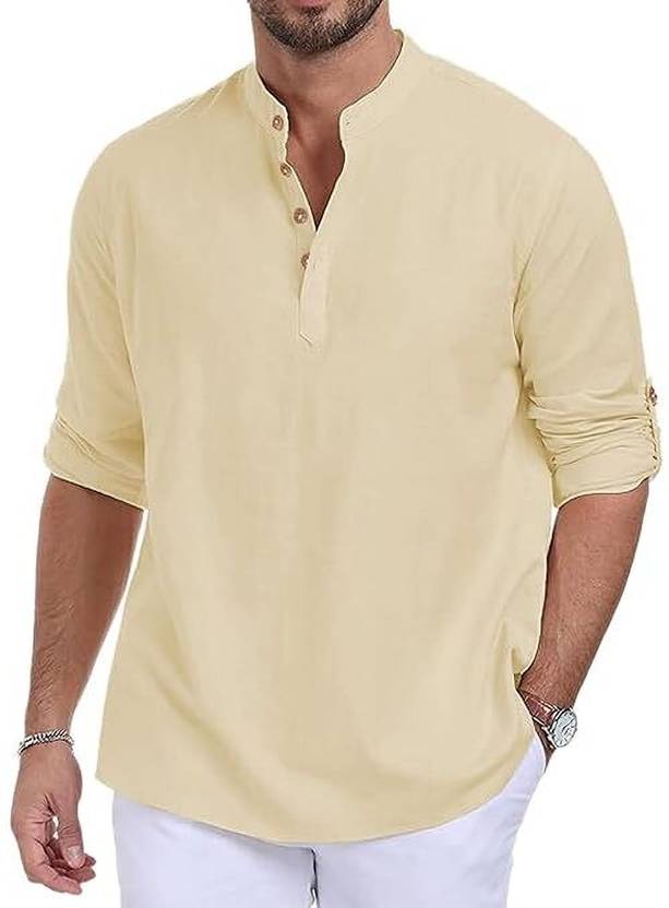 Men Solid Cotton Blend Straight Kurta (Grey)