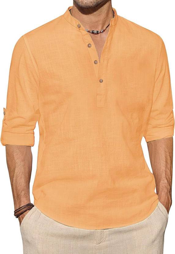 EDIN ENTRPRIS Men Solid Straight Kurta (Beige)