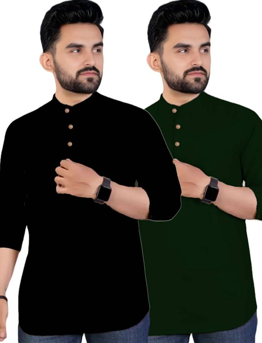 Men Solid Pure Cotton Straight Kurta (Beige)