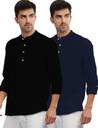 DaReal Pack of 2 Men Solid Cotton Blend Straight Kurta (Dark Blue)