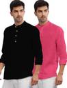Pack of 2 Men Solid Pure Cotton Straight Kurta (Beige)