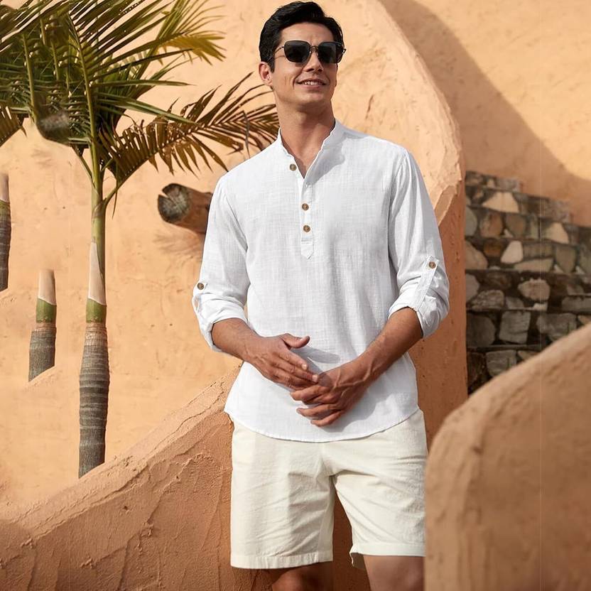 Men Solid Pure Cotton Straight Kurta (Beige)