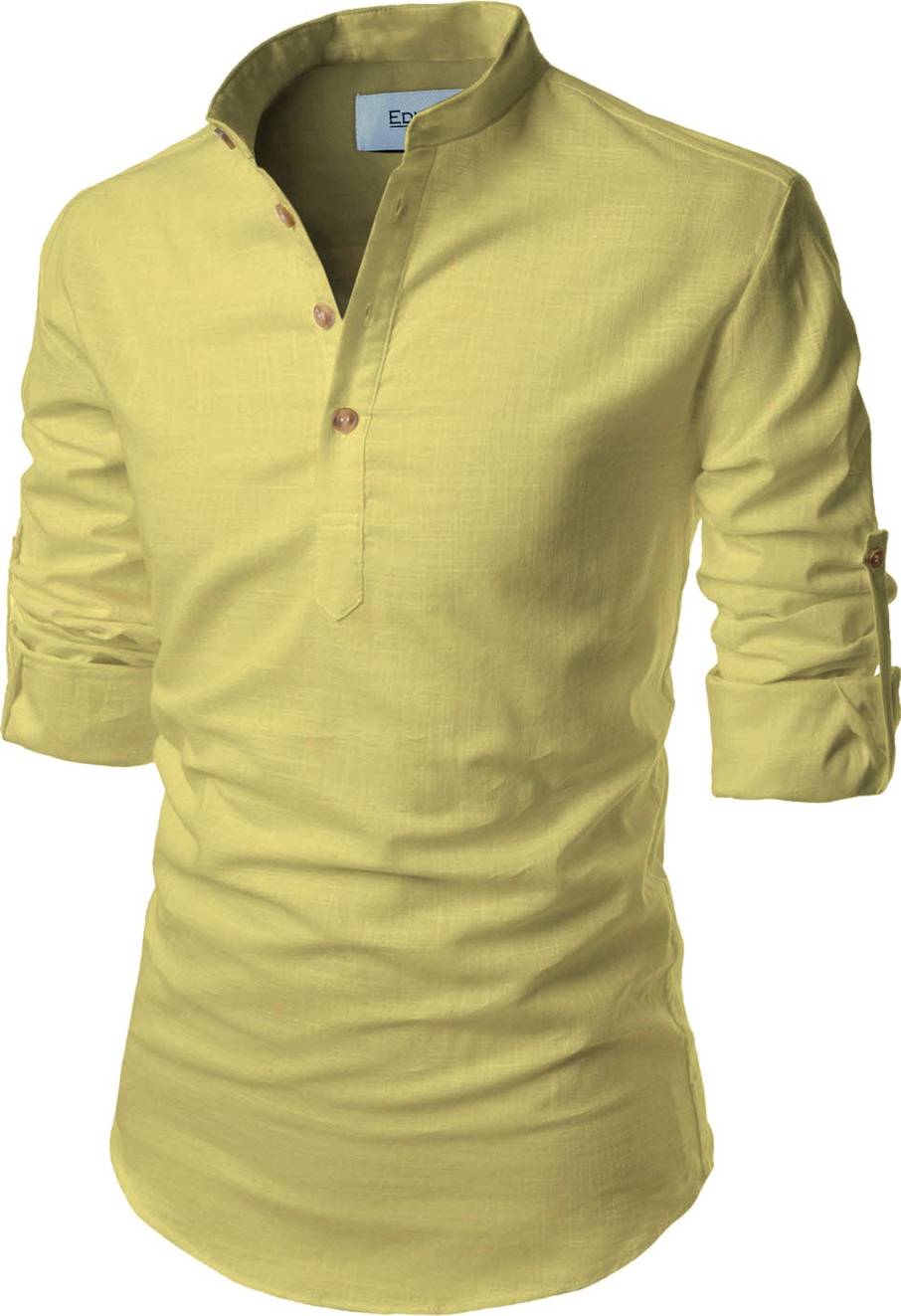 Men Solid Cotton Blend A-line Kurta (Yellow)